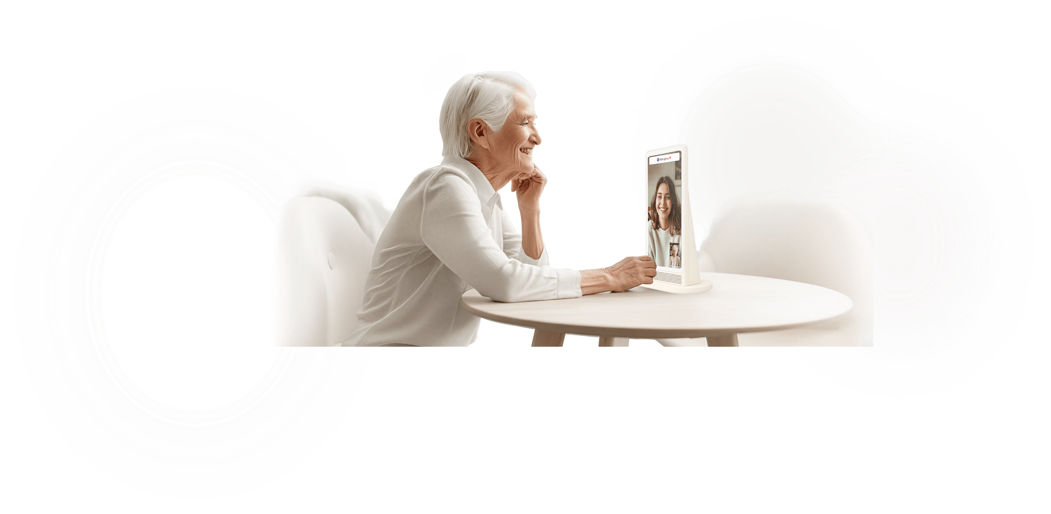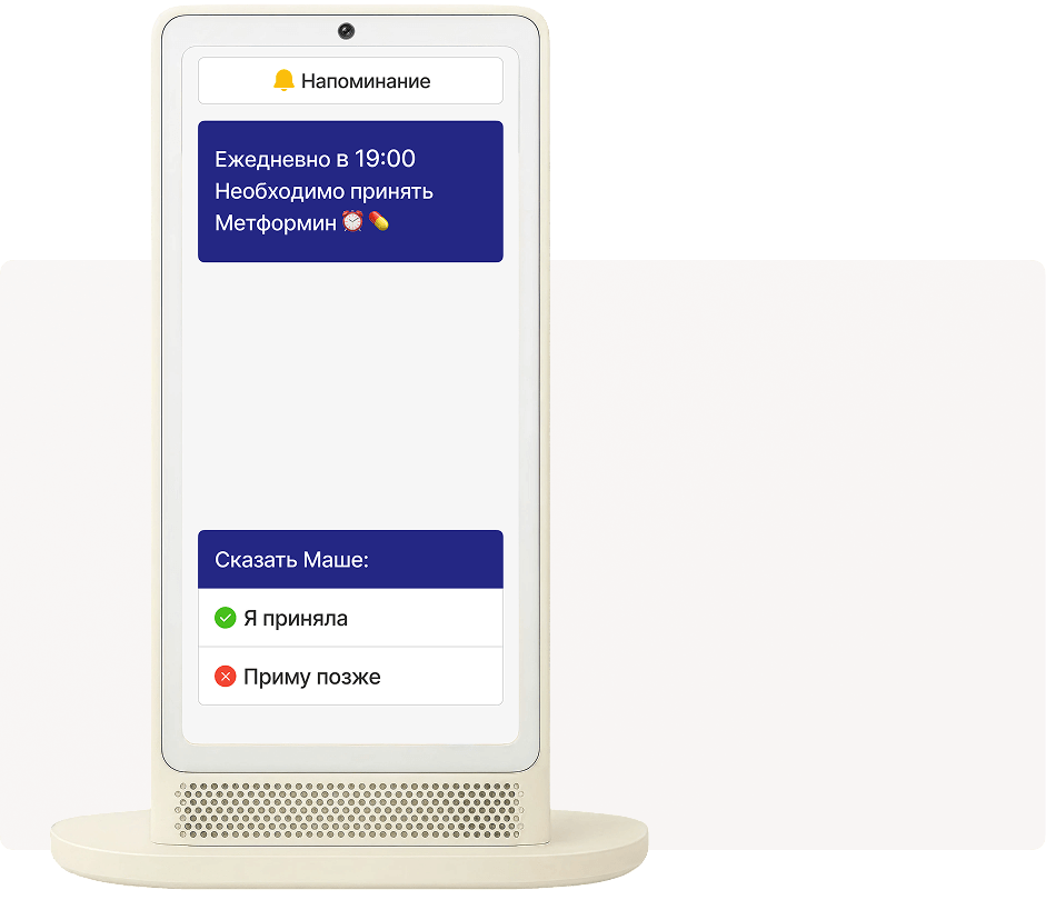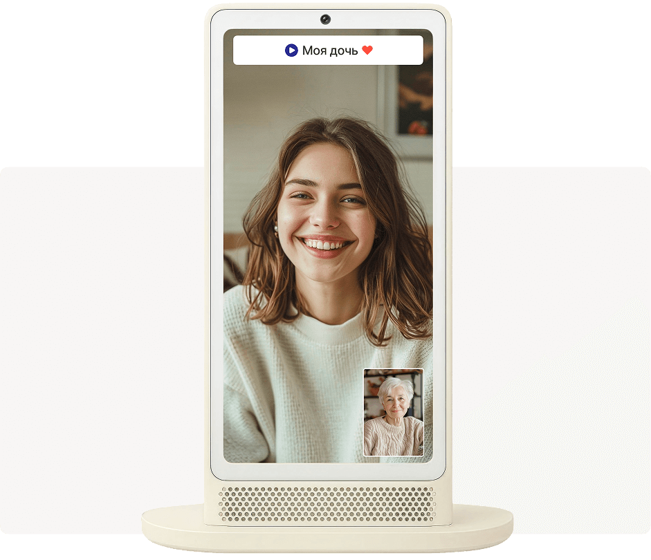 Мама видит вас на экране колонки, а вы ее на своем телефоне. Больше не нужно объяснять, какую кнопку нажать. Маша сама все сделает.